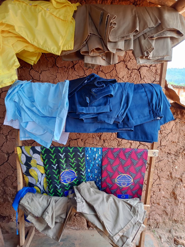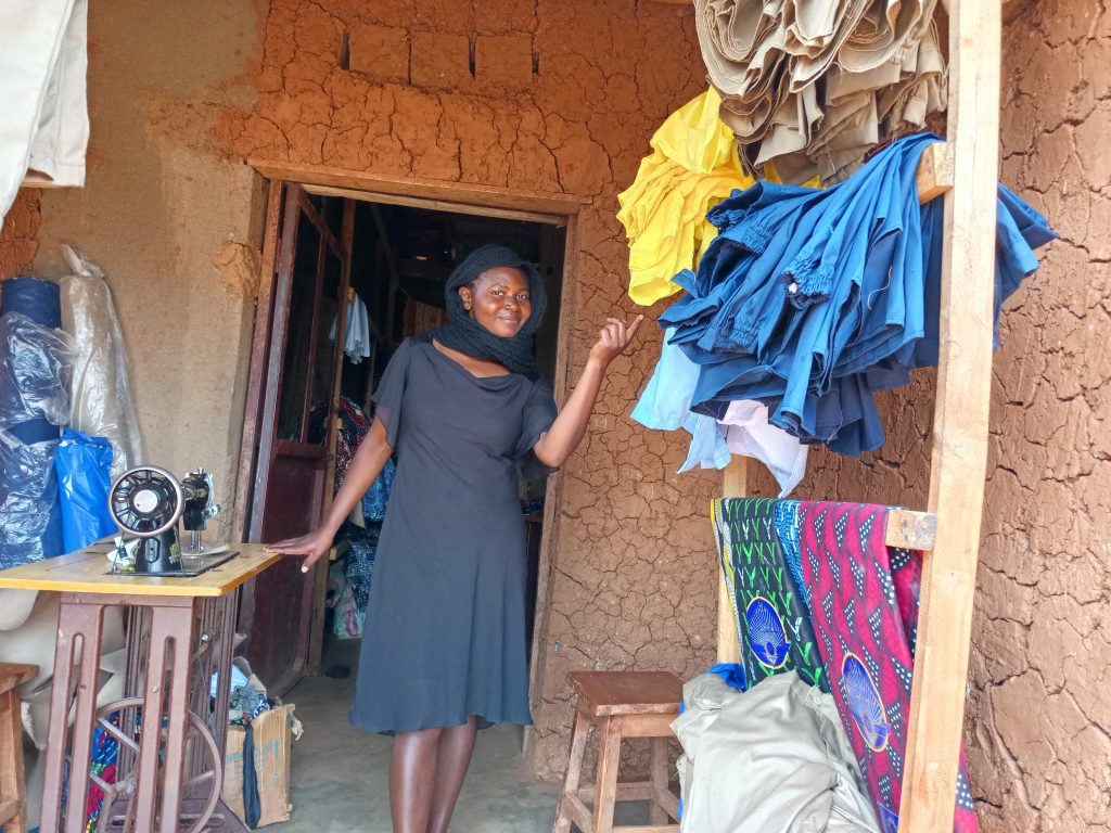 Ati: “Ndangije mu 2022, ku bw’amahirwe nabonye abangurira imashini idoda y’amafaranga 120 000 Frw. Kuva 2023, ntangira kudoda, ako kazi ko mu rugo ndagasezera.”